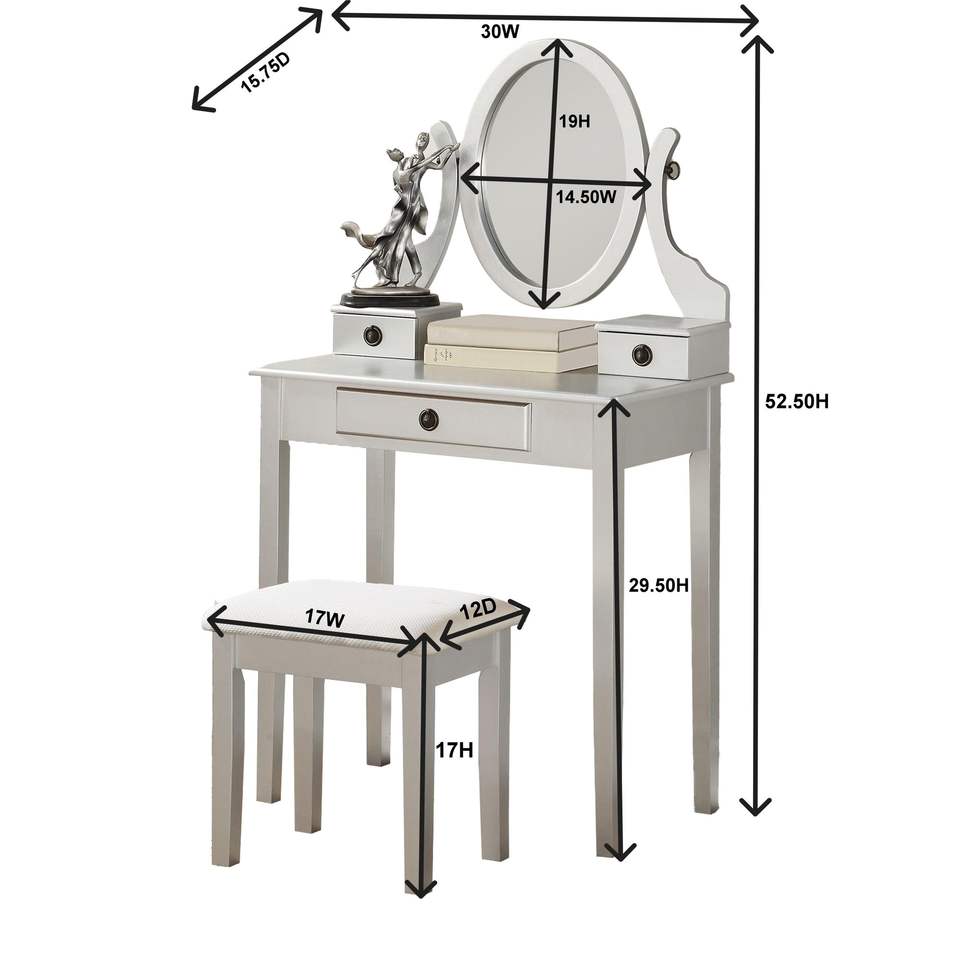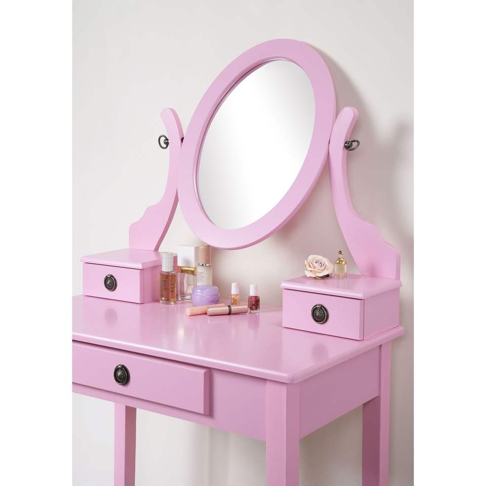 Set Elegante e Alla Moda di Tavolo da Trucco e Sgabello in Legno Rosa Moniys