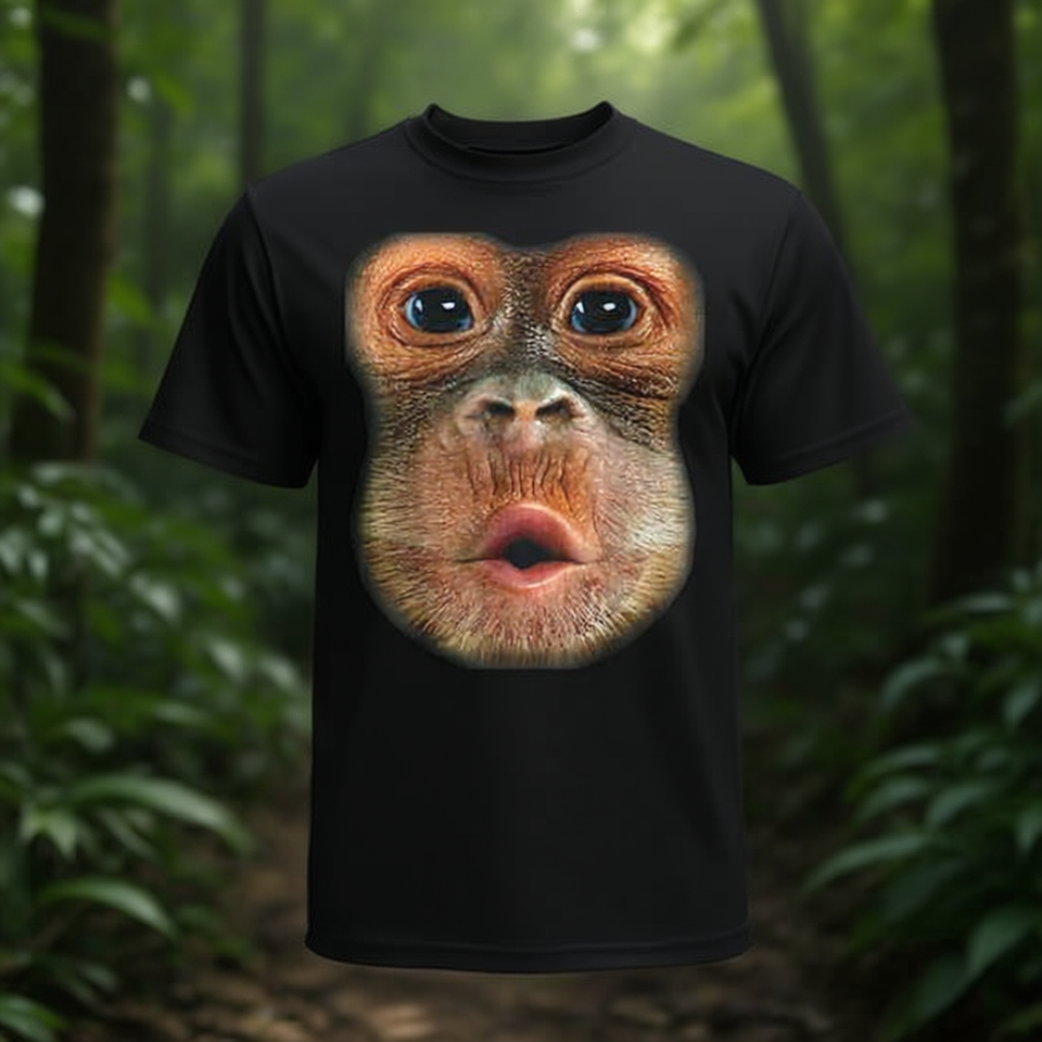T-shirt Monkey Face nera girocollo per adulti unisex, abbigliamento promozionale