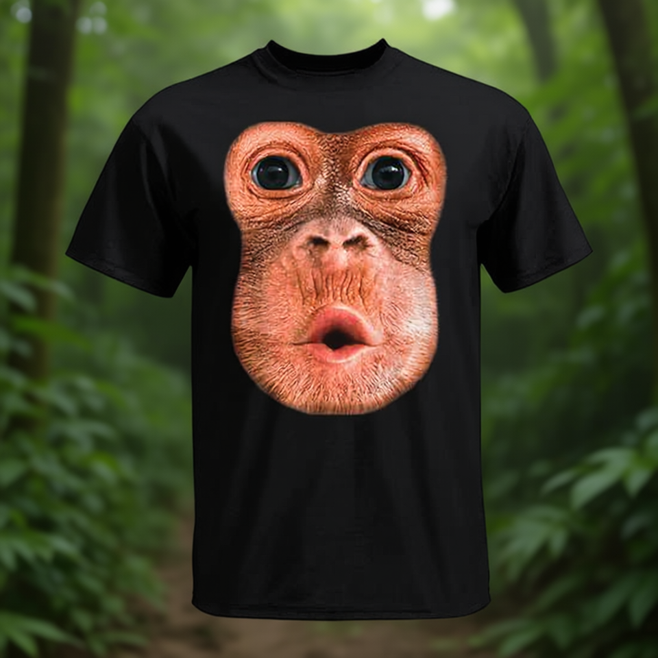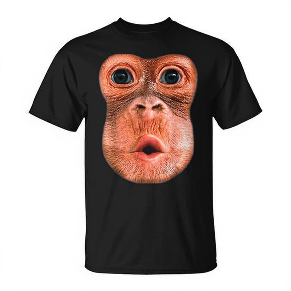 T-shirt con stampa di un viso di scimmia, nera, taglia L, design promozionale