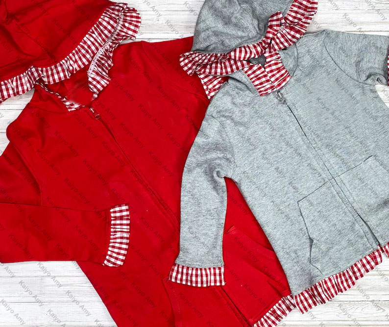 Monogramma ragazze volant Gingham rifinitura Full Zip giacca con cappuccio abbigliamento per bambini inverno camicia a maniche lunghe con tasca