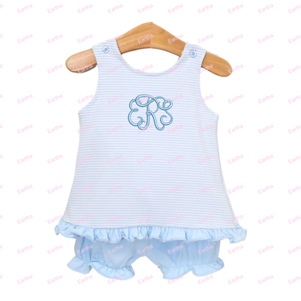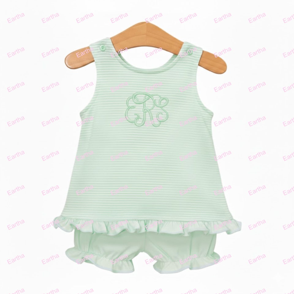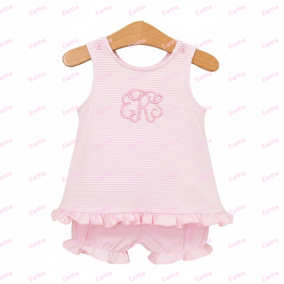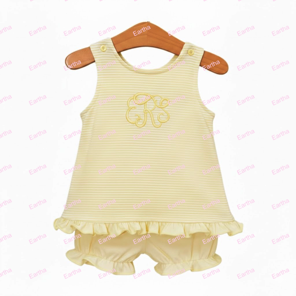 Set di Abbigliamento Estivo per Bambine con Monogramma, Completo in Cotone Senza Maniche con Pantaloncini