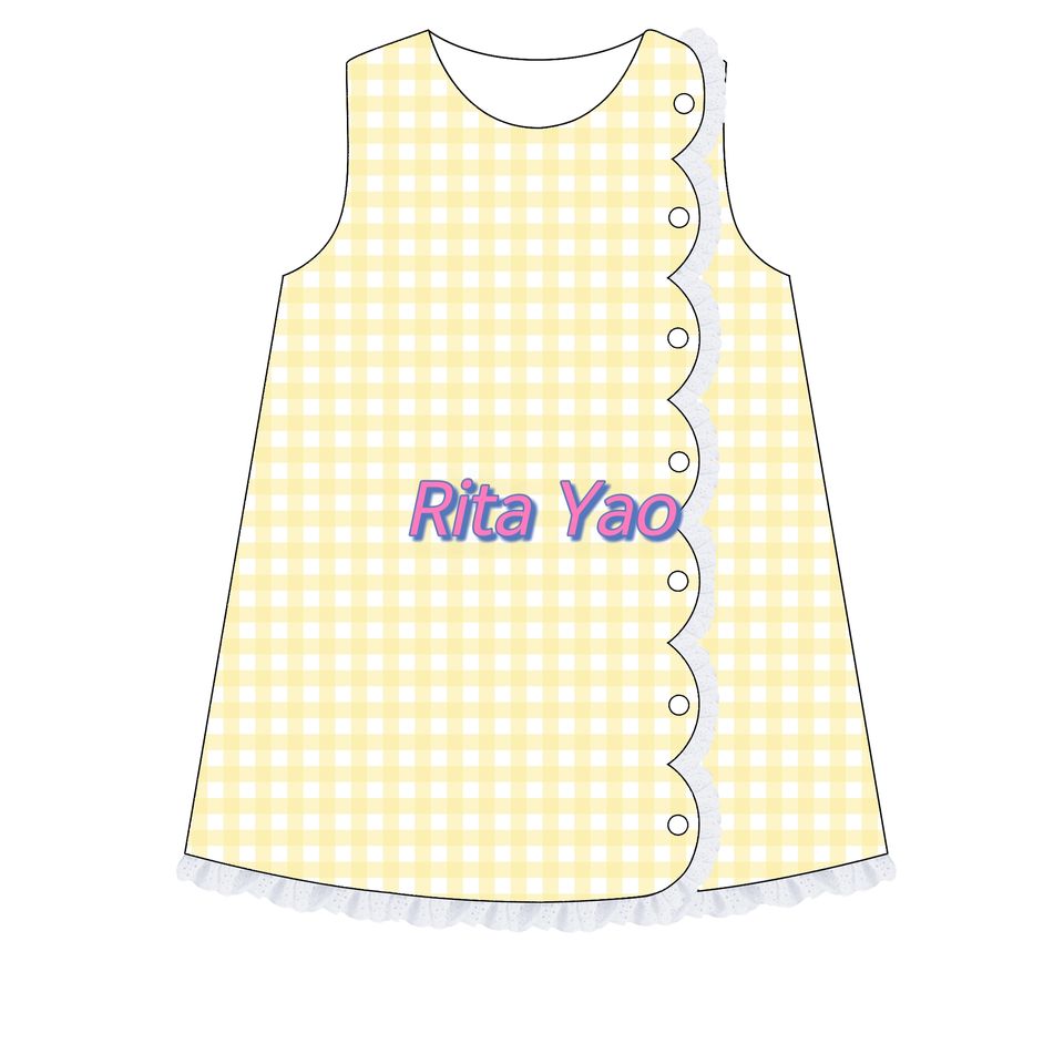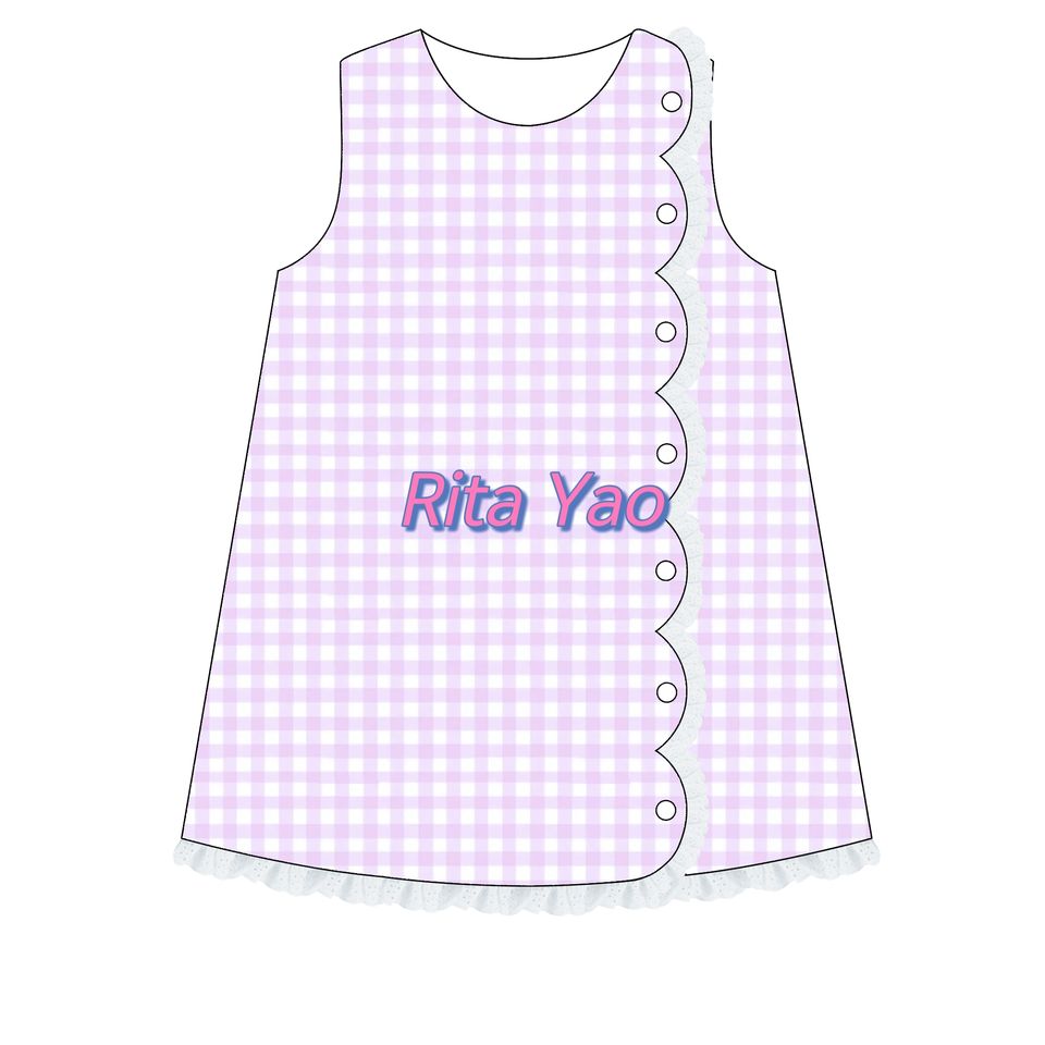 Vestito Estivo Monogrammato per Bambina con Volant, Abito a Quadretti Rosa con Orlo a Festoni, Vestito Personalizzato a Lunghezza Ginocchio per Bambina 2026