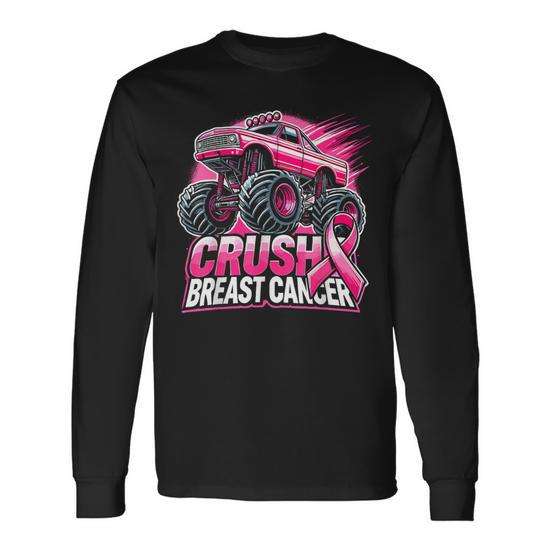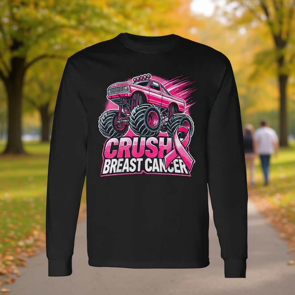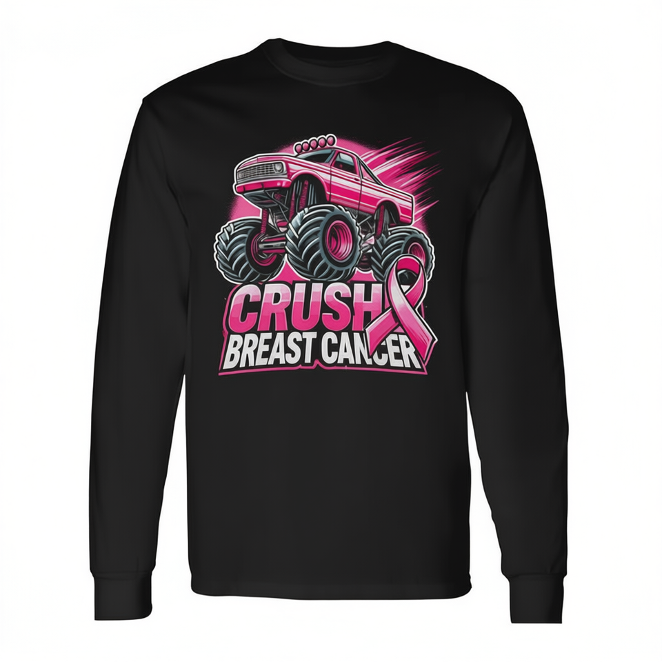 T-shirt a maniche lunghe Monster Truck rosa per la consapevolezza sul cancro al seno