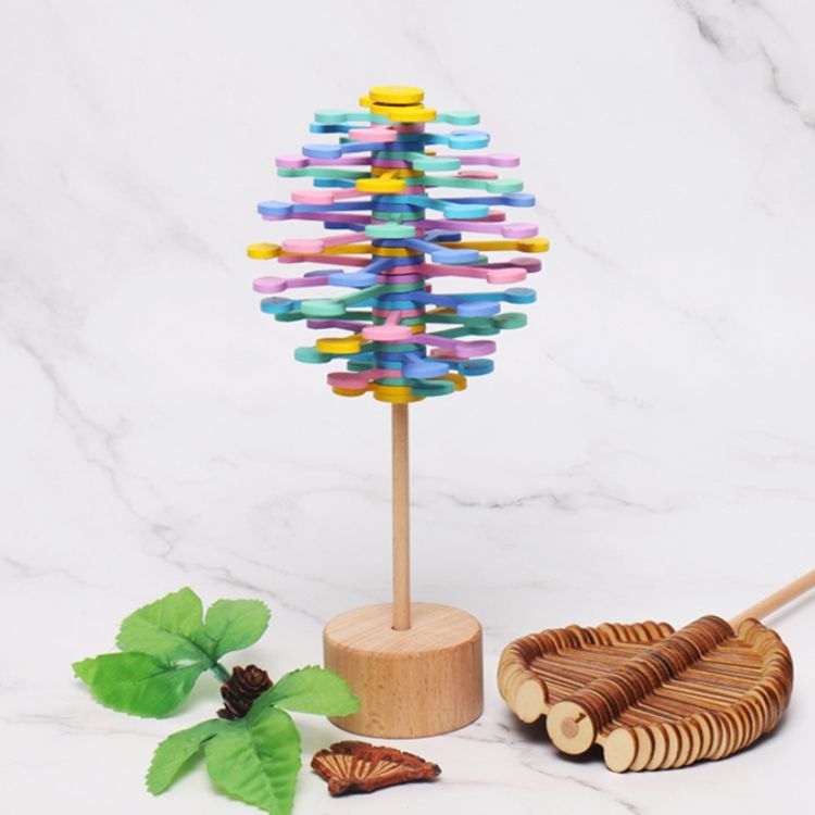 Montessori Fun Stress Relief Wooden Toys Stacking Blocks wooden Spin lollipop Home Art Craft Decors
