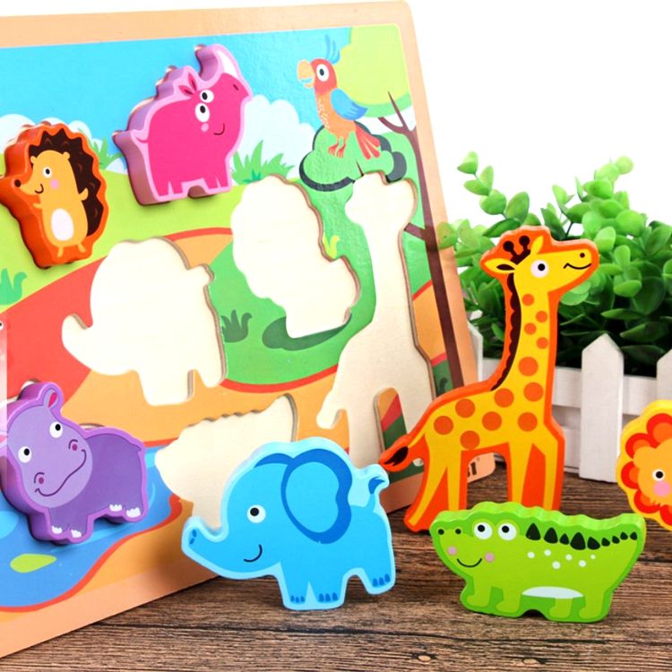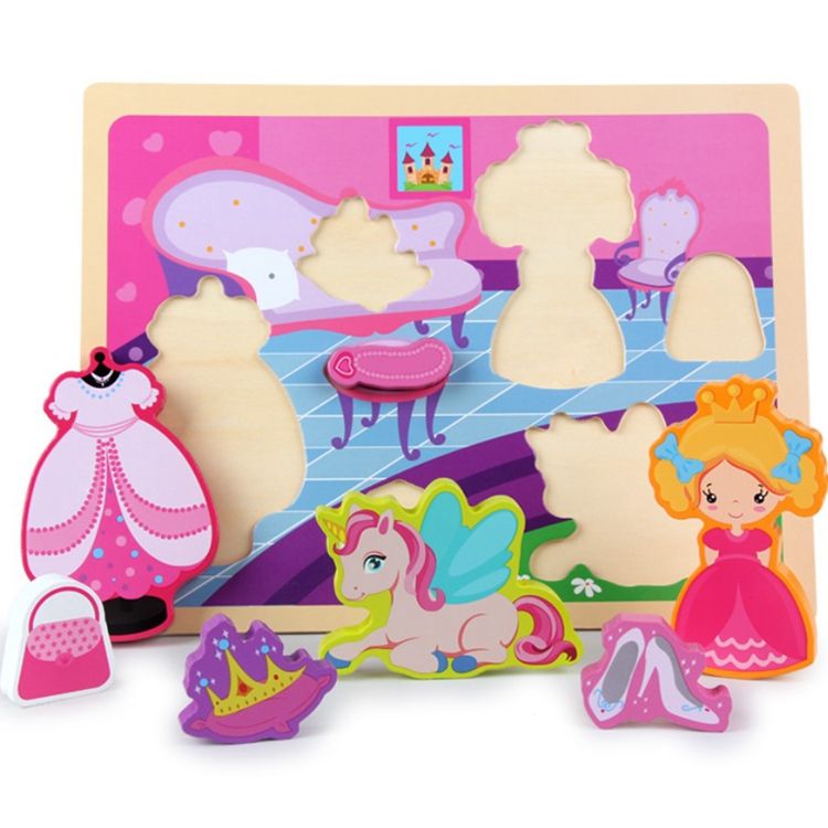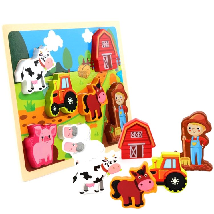 Montessori Kids Recognition Learning Toy wooden Cartoon theme puzzle story telling wooden puzzle