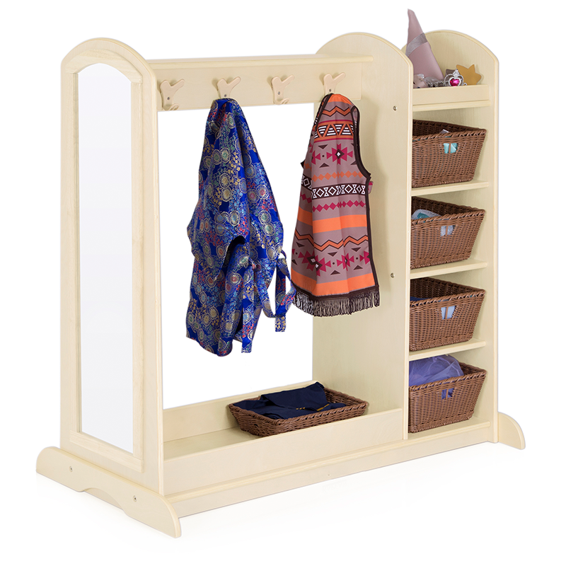 Montessori Kindergarten Wooden Dress Up Center Wardrobe Lockers with Mirror Preschool Daycare Early Learning Furniture Unit