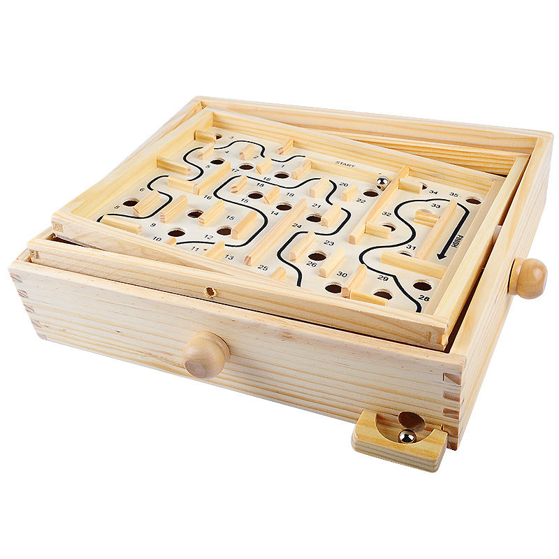 Gioco del Labirinto Montessori, Giocattolo Educativo per Bambini e Famiglia, Labirinto in Legno di Pino Fai-da-Te con Sfera d'Acciaio per l'Equilibrio