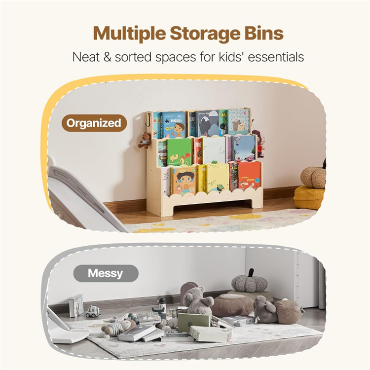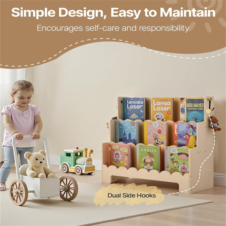 Montessori Design capesante libreria in legno per bambini moderno soggiorno camera da letto con 2 ganci doppi
