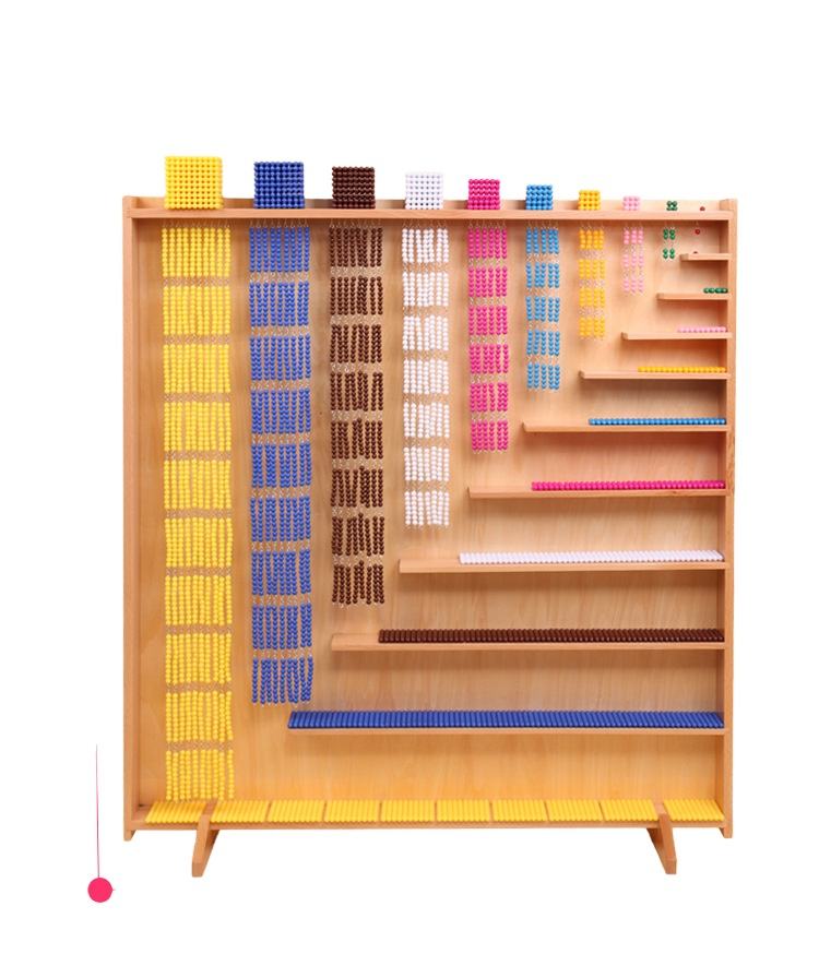 Set di Supporti per Perline Grandi Montessori, Serie Matematica per Asilo, Strumenti con Cubo, Catena di Perline e Telaio, Scaffale Montessori