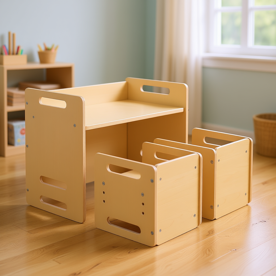 Montessori Toddler Desk Set 26.5x20x16 Inch Wood With 2 Chairs Kids' Furniture