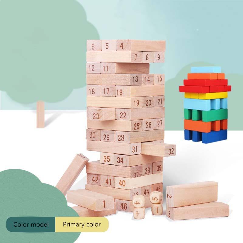 Giocattoli Montessori su misura 48 pezzi Tower Game accatastamento torre piccolo gioco di impilamento in legno città blocchi