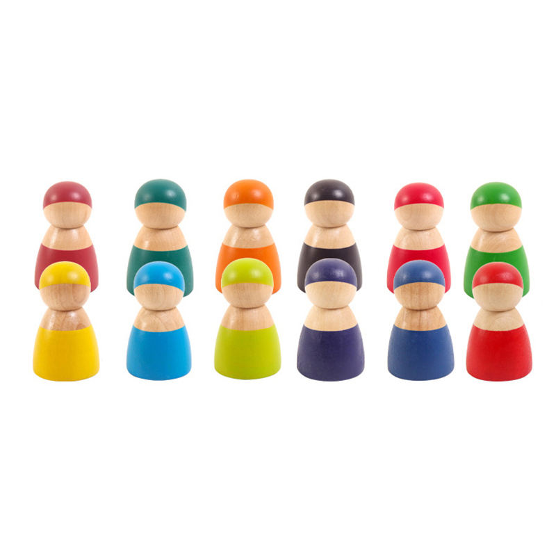 Montessori Wooden 12 Color Rainbow Friends Peg Dolls Wooden Pretend Play People Figures Doll Colorful Blocks Toys