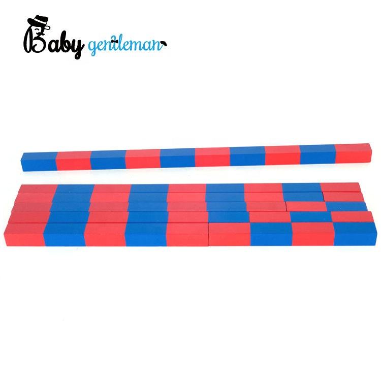 Set di Barre Frazionarie in Legno Rosso e Blu Montessori, Ausilio Didattico per l'Apprendimento della Matematica per Bambini Z12071F