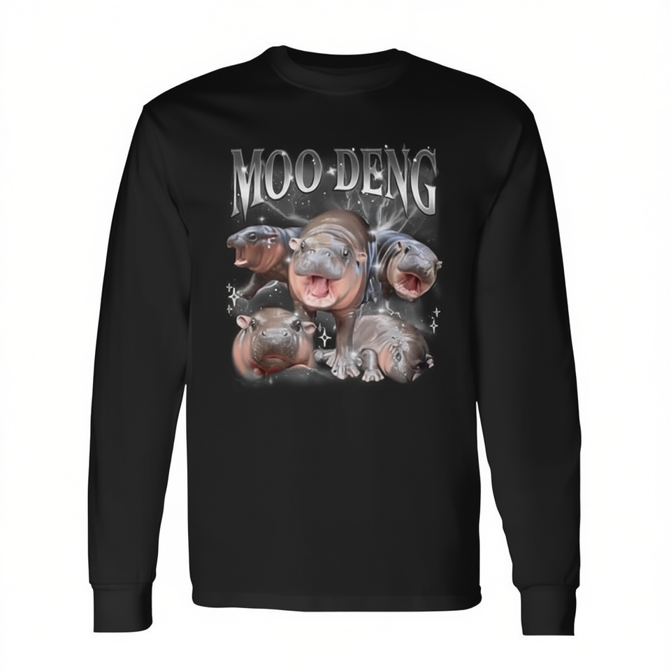 T-shirt a maniche lunghe Moo-Deng Baby Pigmy Hippo dal design vintage divertente