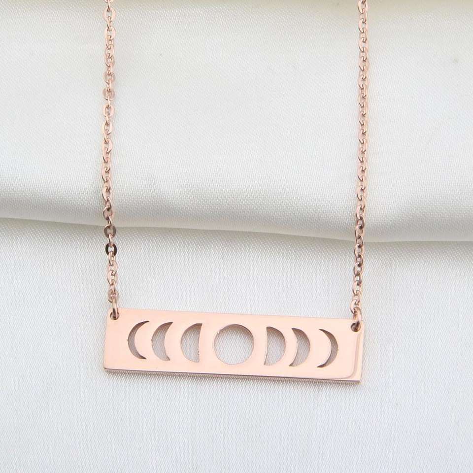 Moon Phases Necklace for Women 18k Gold Plated Stainless Steel bar Necklace