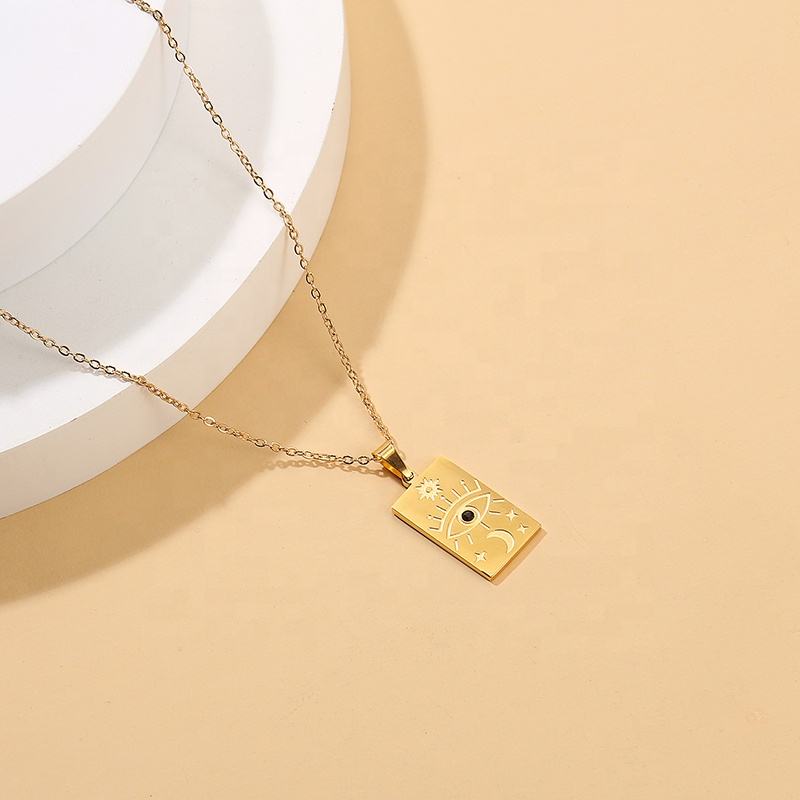 Ciondolo Quadrato Sole Luna e Stella all'Ingrosso, Gioielli in Acciaio Inossidabile Placcato Oro 18K, Collana con Pendente Personalizzata Stile Turco