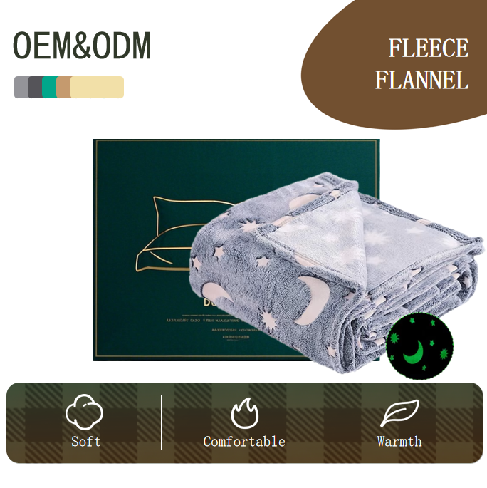 Coperta per Bambini con Design Luna e Stelle che Brillano al Buio, 100% Poliestere, Morbida Coperta in Flanella Luminosa per Bambini
