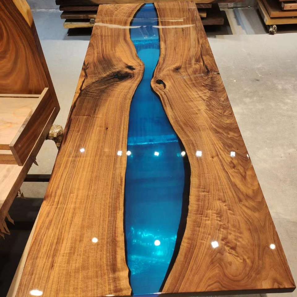 Moderna Scrivania da Ufficio in Legno Massello con Resina Epossidica, Tavolo da Pranzo e Console Bar Personalizzabile