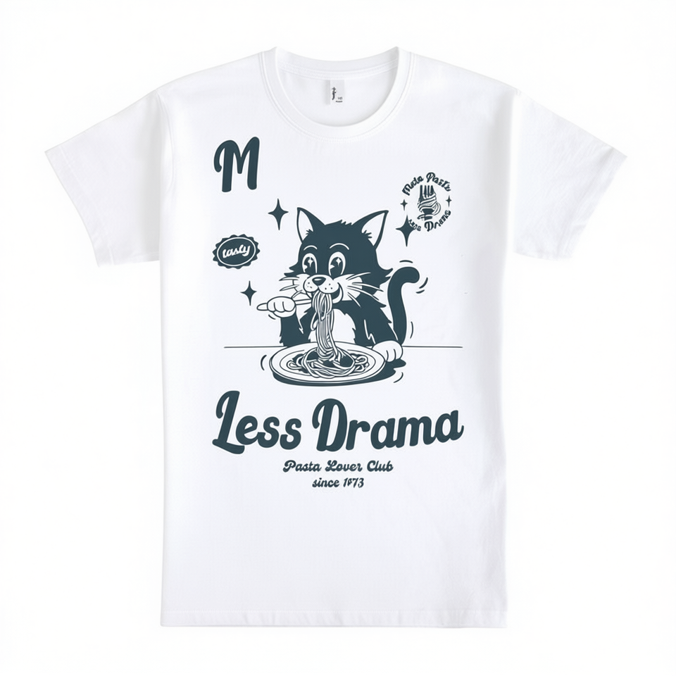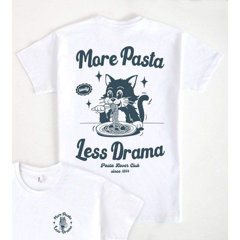 Maglietta More Pasta Less Drama bianca unisex per adulti taglia SMLXLXXL