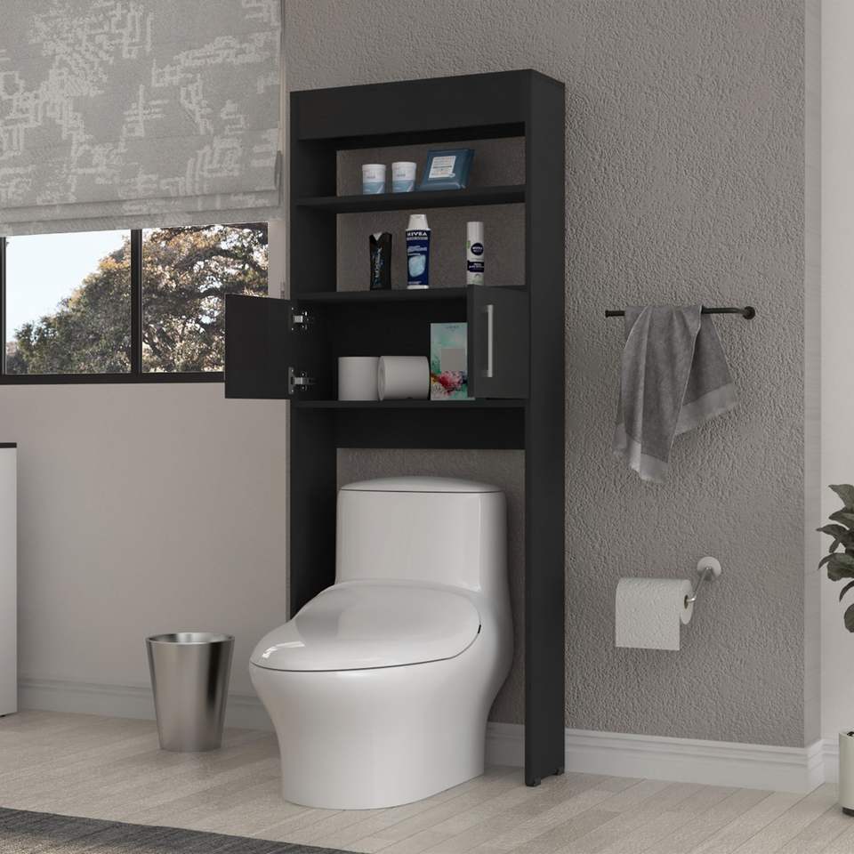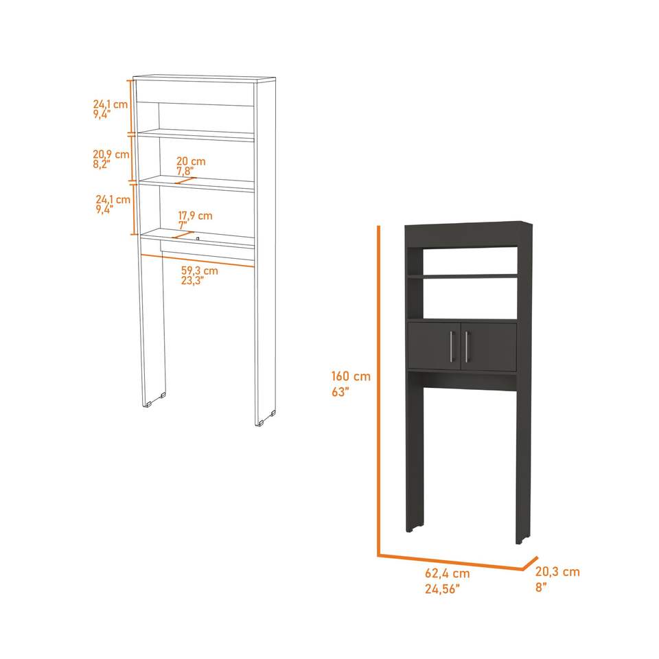 Mobiletto da Bagno Morley a 2 Ripiani Sopra il WC, Nero Wengue