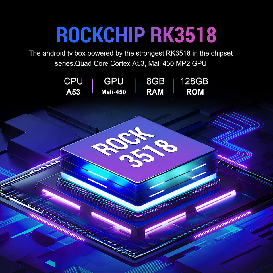 Mortal T1+ Android 16.0 RK3518 Smart TV Box per Streaming OEM/ODM 4K 60fps WiFi6 Processore Quad Core Telecomando Vocale 8GB128GB