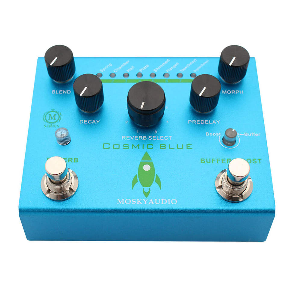 Mosky Cosmic Blue riverbero/booster/buffer pedale-8 modalità di riverbero con True Bypass, Studio/chitarra dal vivo/potenziatore della catena del segnale basso