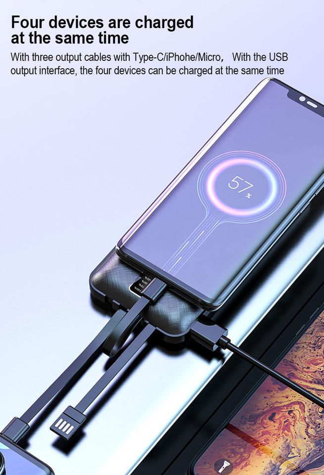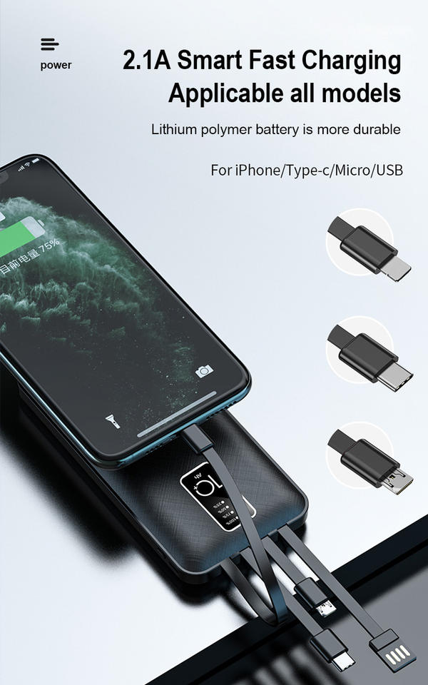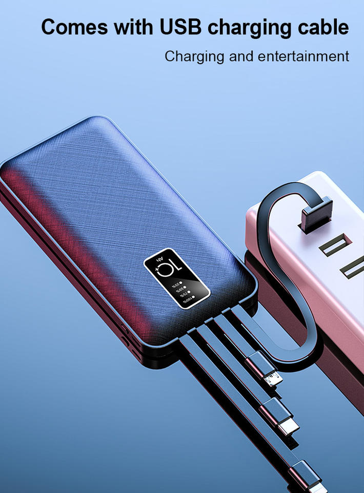 Ultra Sottile, Ricarica veloce, Ad alta Capacità, Con cavo, Portatile, Display A LED, 2 in 1 rapido caricatore della banca di potere, Per esterno