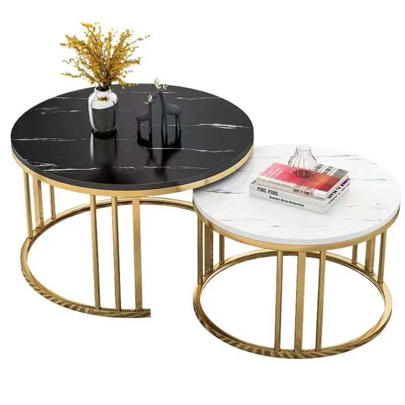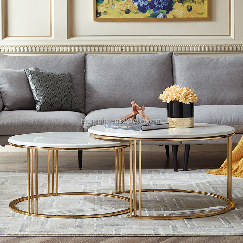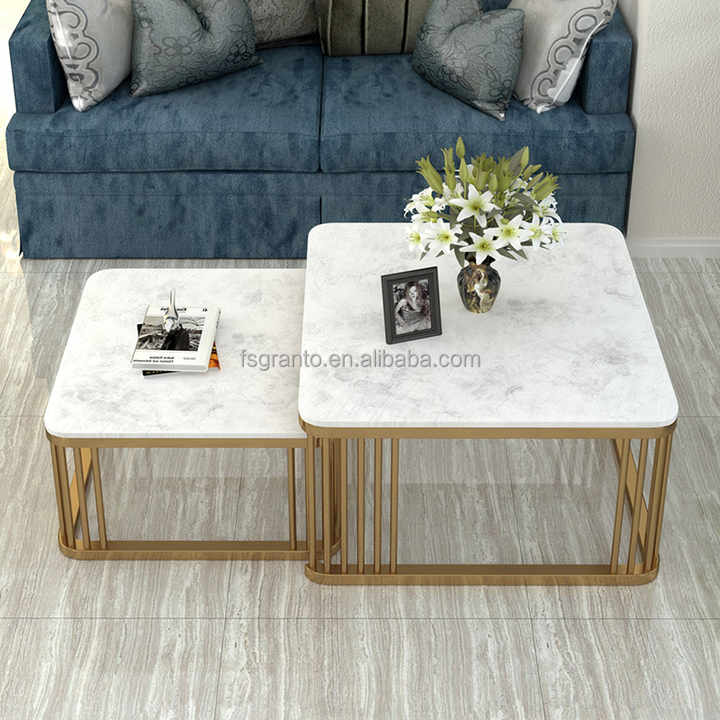 Tavolini da caffè in metallo dorato di qualità più popolari con piani in marmo per nidificazione da salotto e Set da tavolo