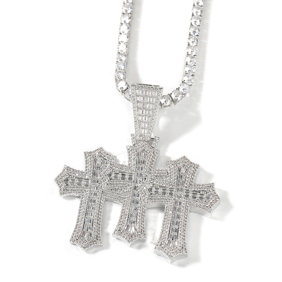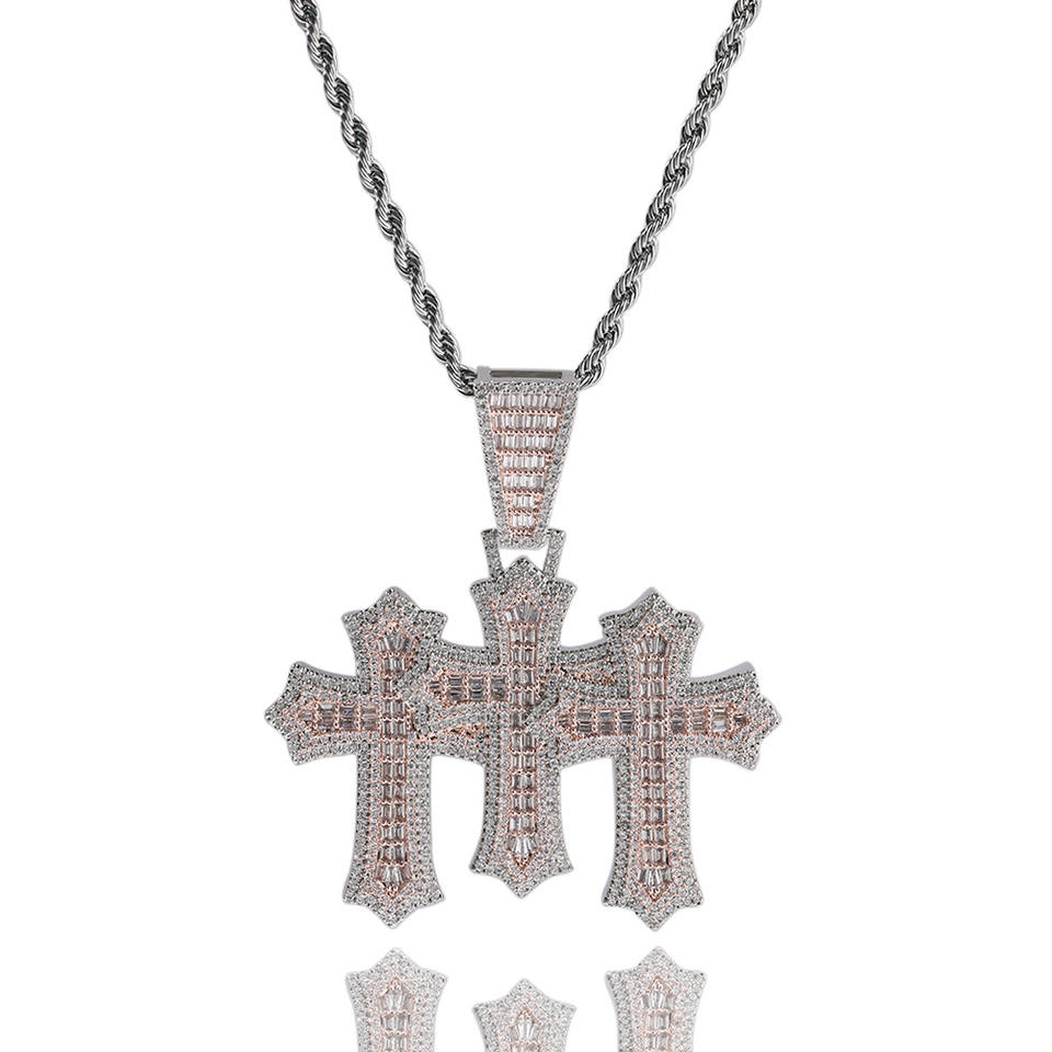 Gioielli più popolari 5A CZ con ciondoli a tripla croce in ottone ciondoli da Tennis collana a catena da donna regali cristiani religiosi