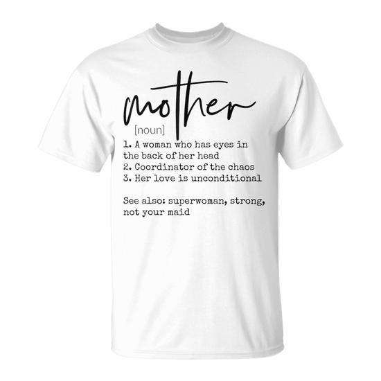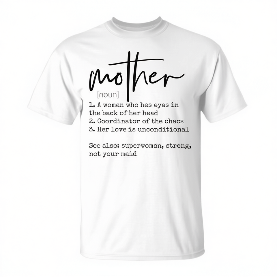Maglietta grafica con stampa digitale 'Mother Definition' unisex per adulti, a maniche corte, girocollo, per riunioni di famiglia e feste.