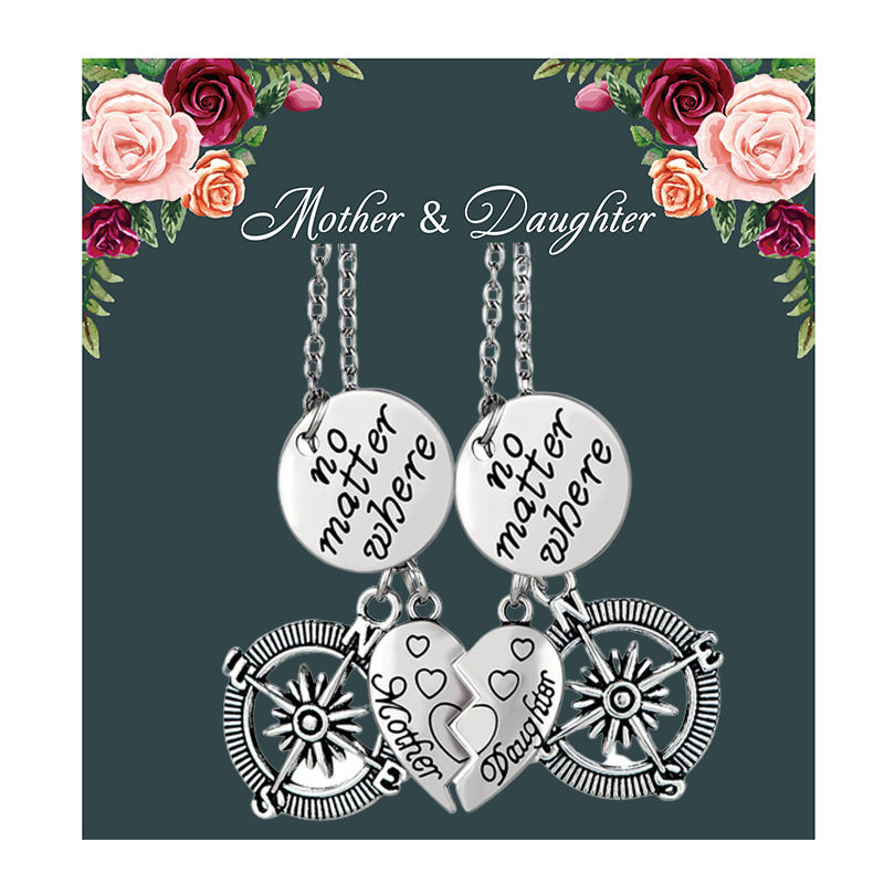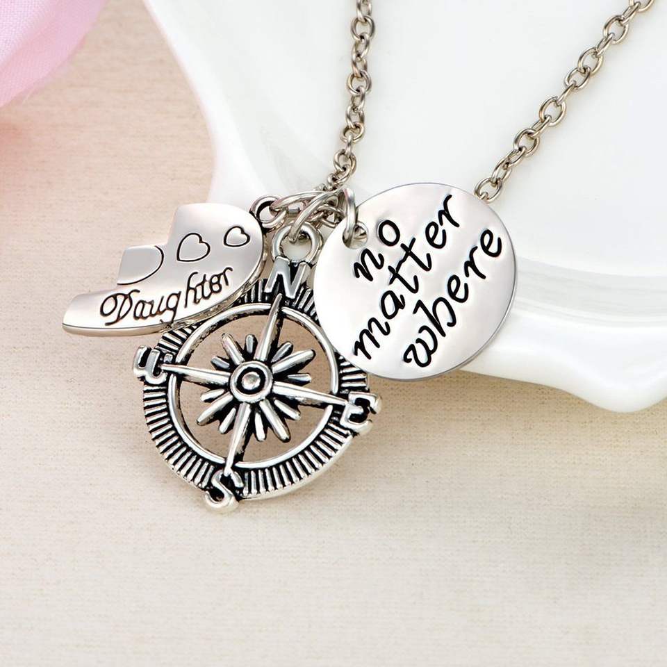 Mother's Day Gift No Matter Where Mother Daughter Compass Pendant Jewelry Necklaces Gift for Mom Daughters Necklace