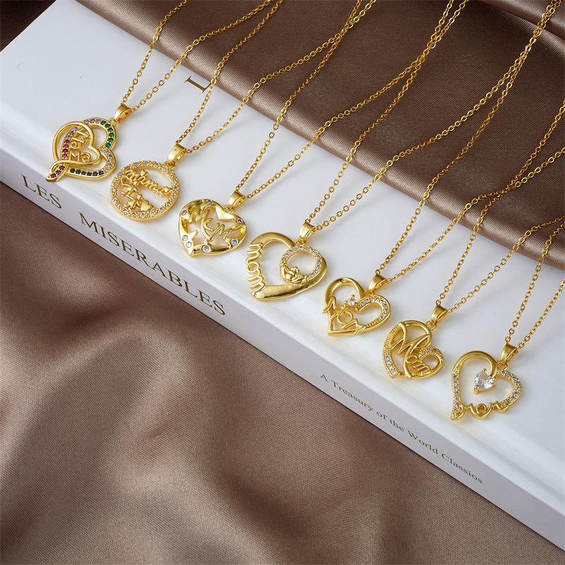 Regalo festa della mamma 18k placcato oro CZ zirconi Charms collana mamma mamma lettere cuore amore collana