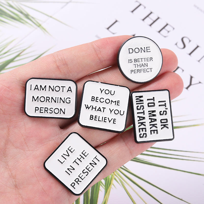 1. Parola chiave:Spilla smaltata con citazione motivazionale dell'insegnante