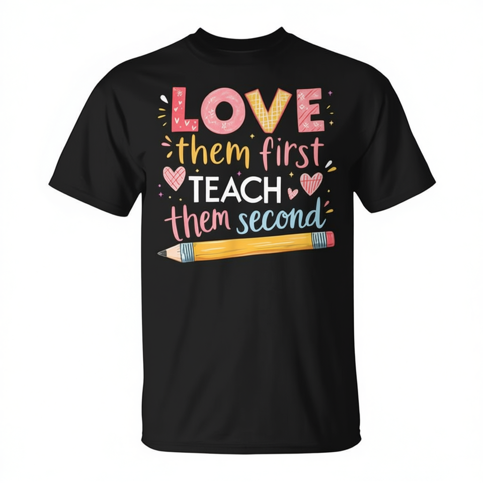 Maglietta motivazionale per insegnanti e educatori Second Love Them Teach Them per educatori e insegnanti
