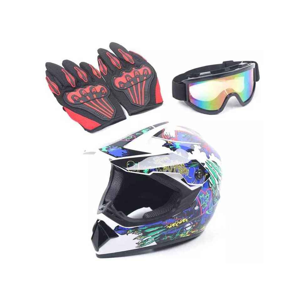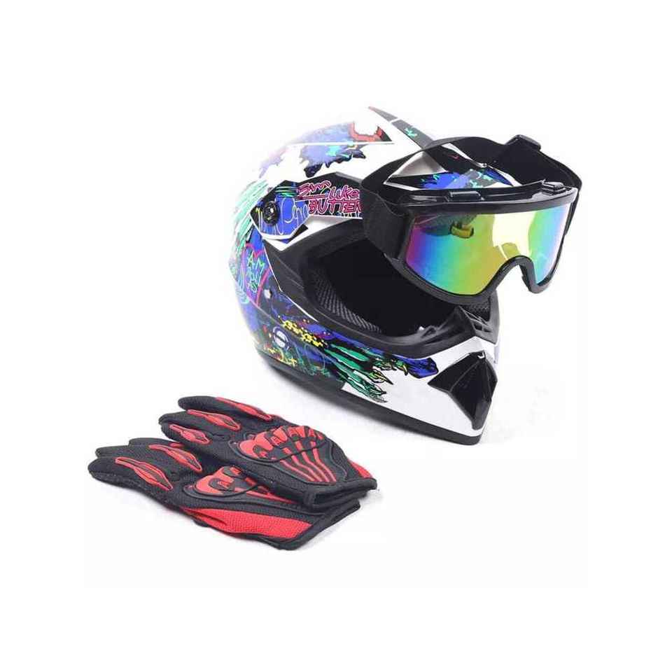 Motocross Adult Helmet with ABS Shell XL (L Size) for Motor Cross Dirt Bike Road ATV UTV Riding Gloves and Goggles