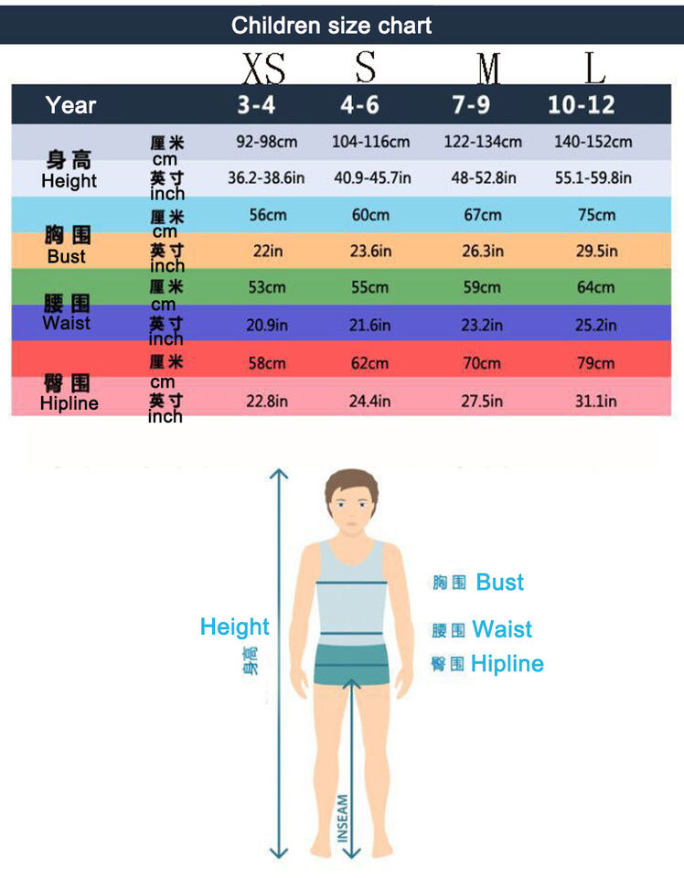 4-6Years/S, 7-9Years/M, 10-12Years/L
