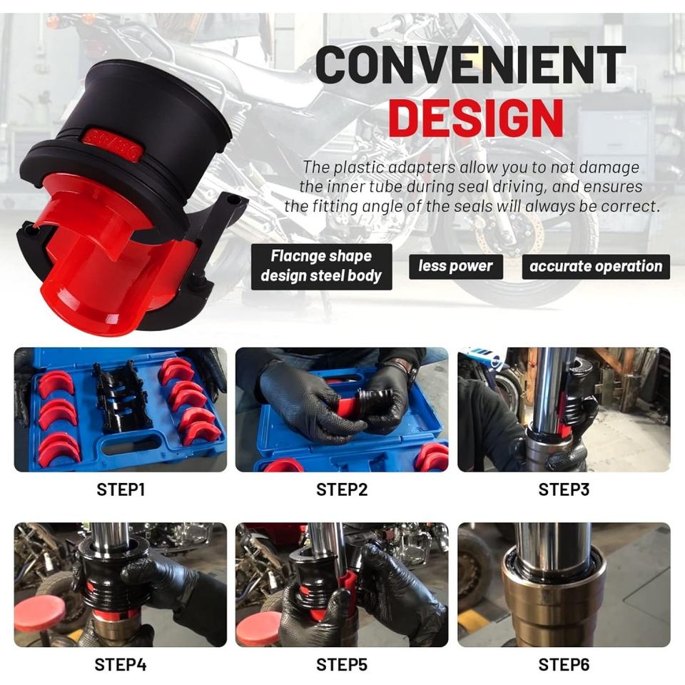 Kit Universale Nachee per l'Installazione e la Rimozione di Guarnizioni Forcella Moto, 14 Pezzi, in PVC Rigido, per Diametri 35-50mm
