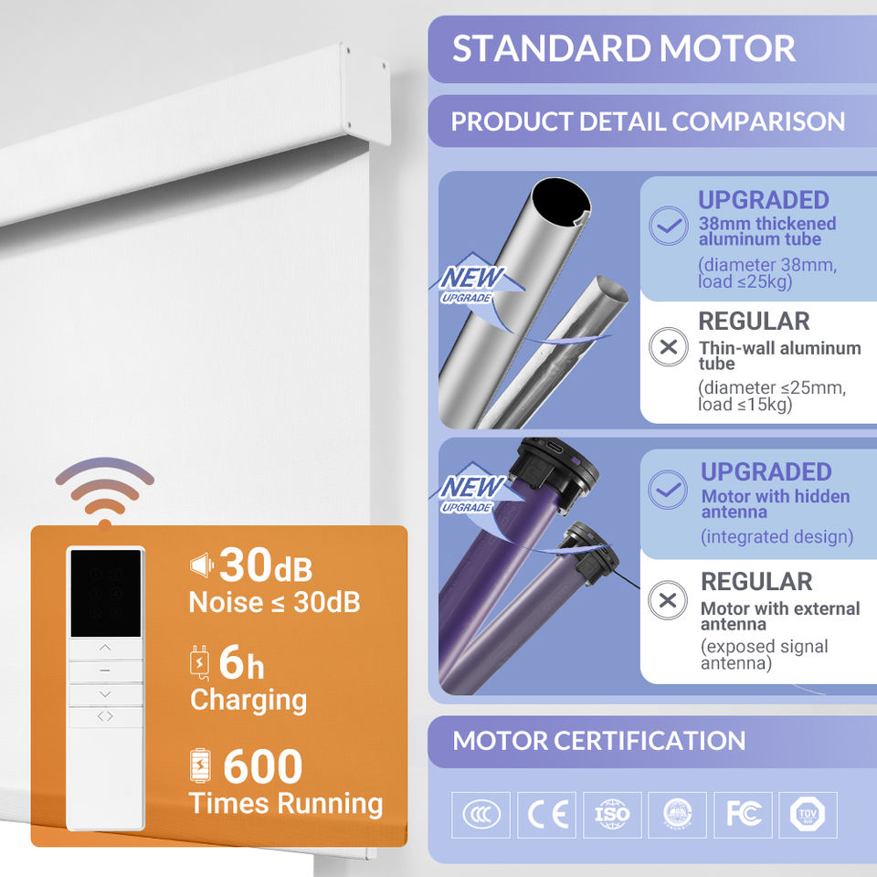 Tenda Motorizzata per Finestre, Tenda a Rullo Intelligente con Telecomando, Compatibile con Tuya/Matter/Zigbee/Bluetooth, Motore Opzionale Senza Antenna