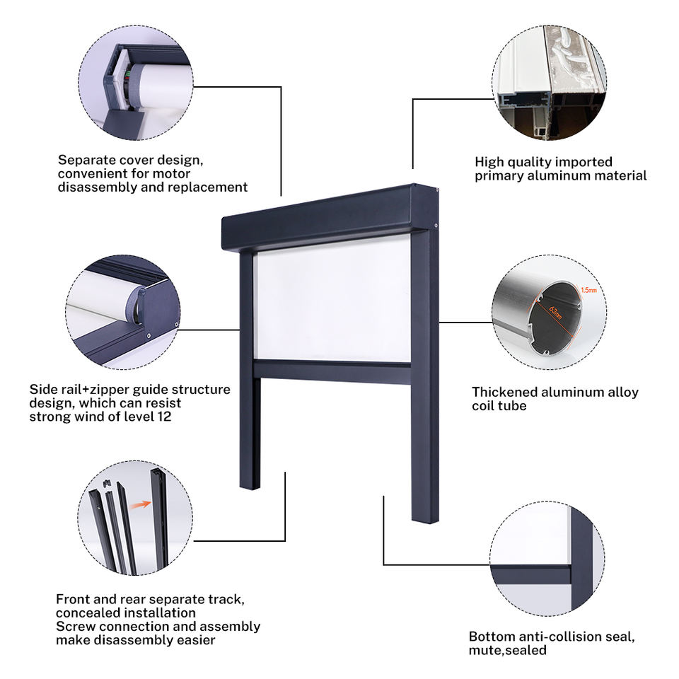 Nome del prodotto:Paralumi per schermo a rullo in pvc automatici antivento elettrici motorizzati
