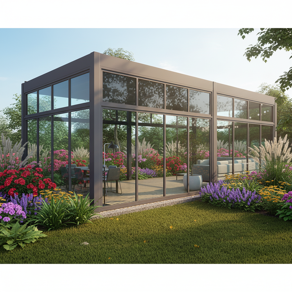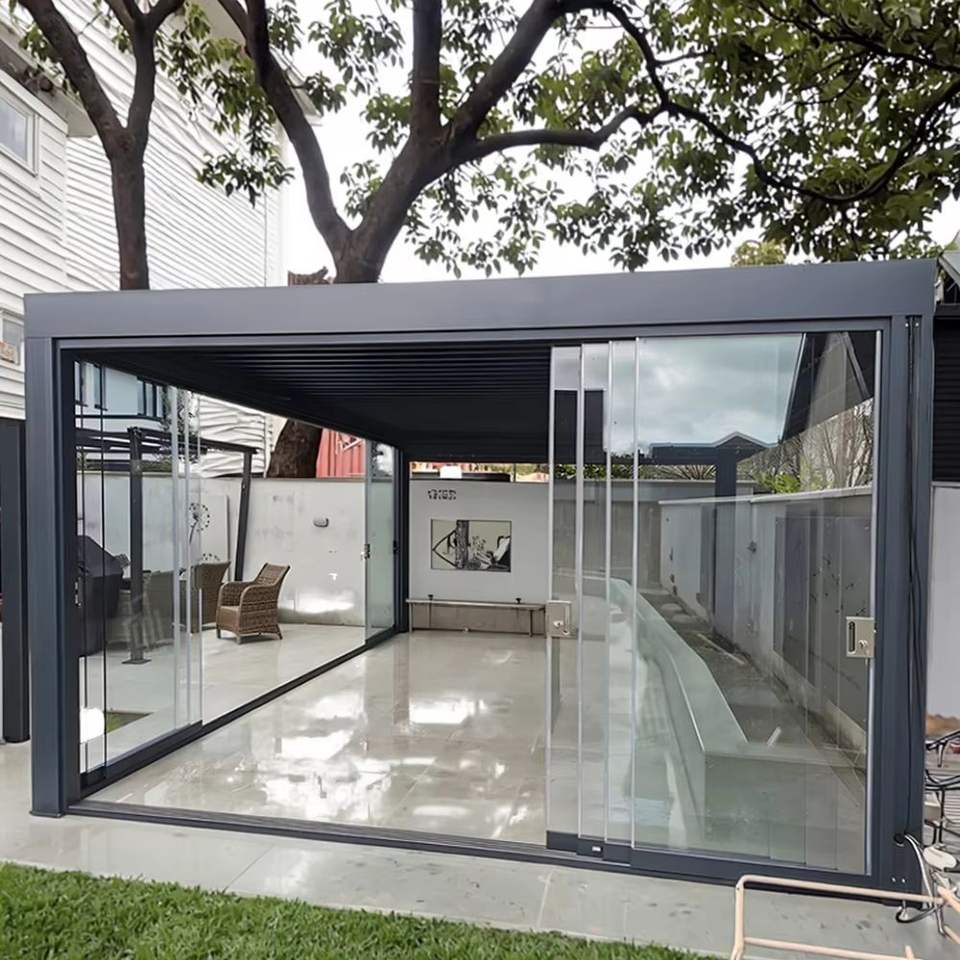 Nome del prodotto:Luci LED Tetto a Lamelle Porte Scorrevoli in Vetro Patio Gazebo Pergola
