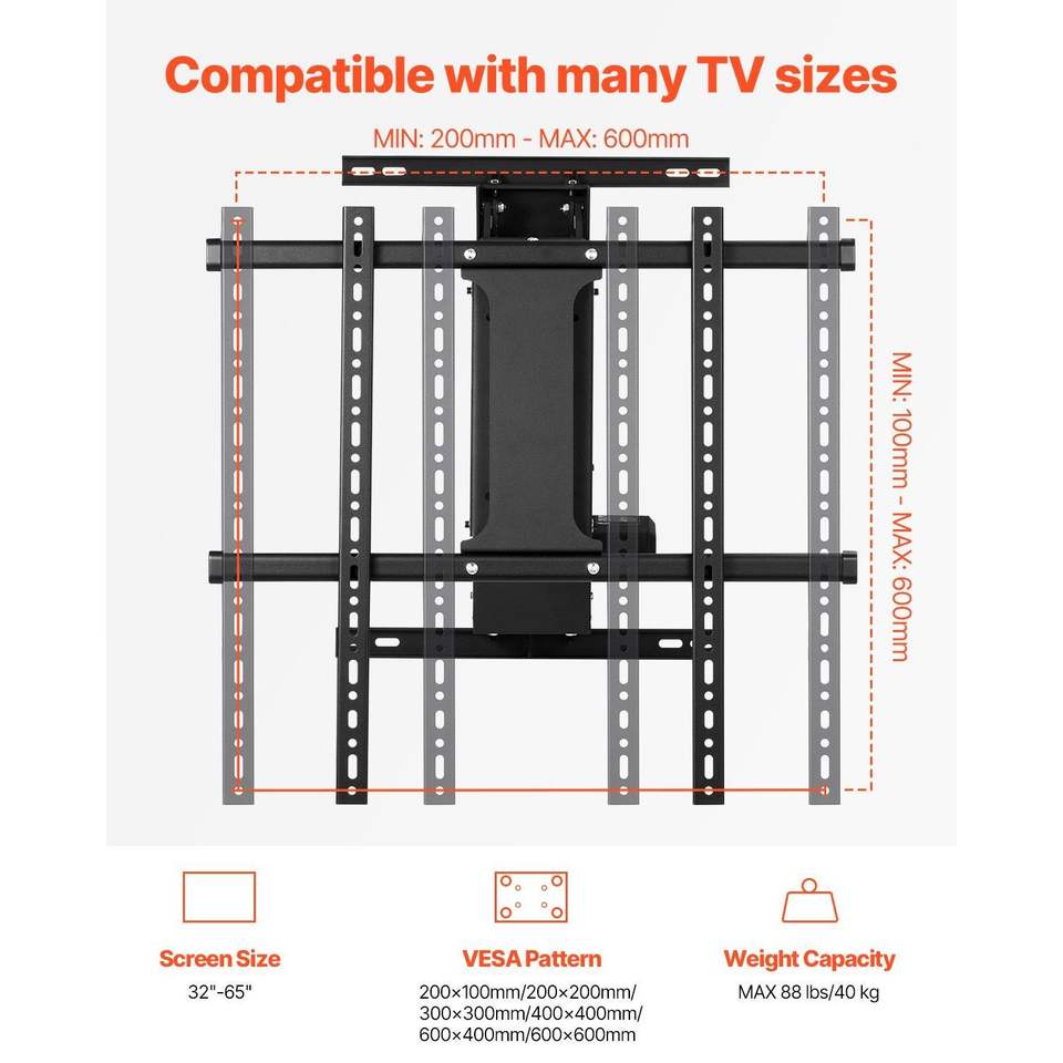 Supporto TV Motorizzato da Parete per TV da 32-65 Pollici, Supporto TV Elettrico Regolabile da Soffitto, Staffa TV Ribaltabile, Supporti e Carrelli TV