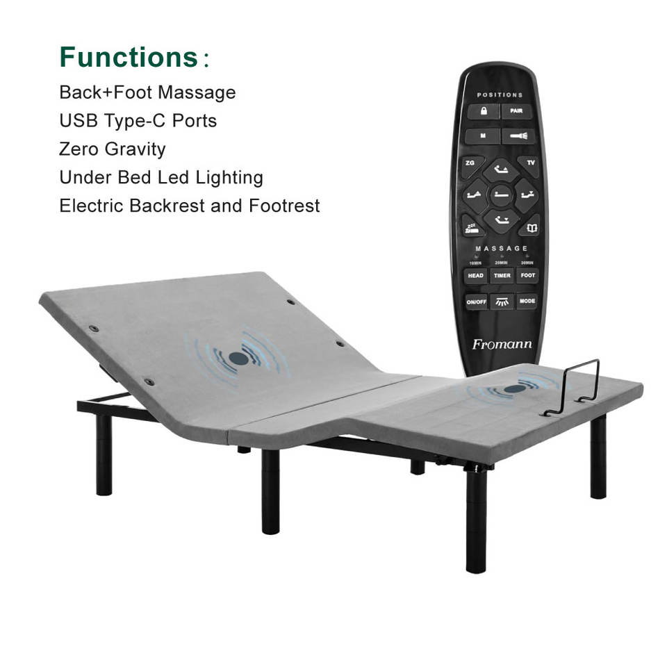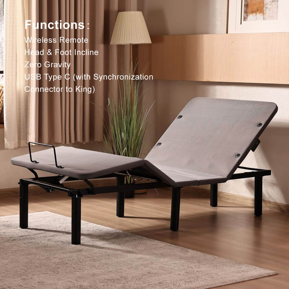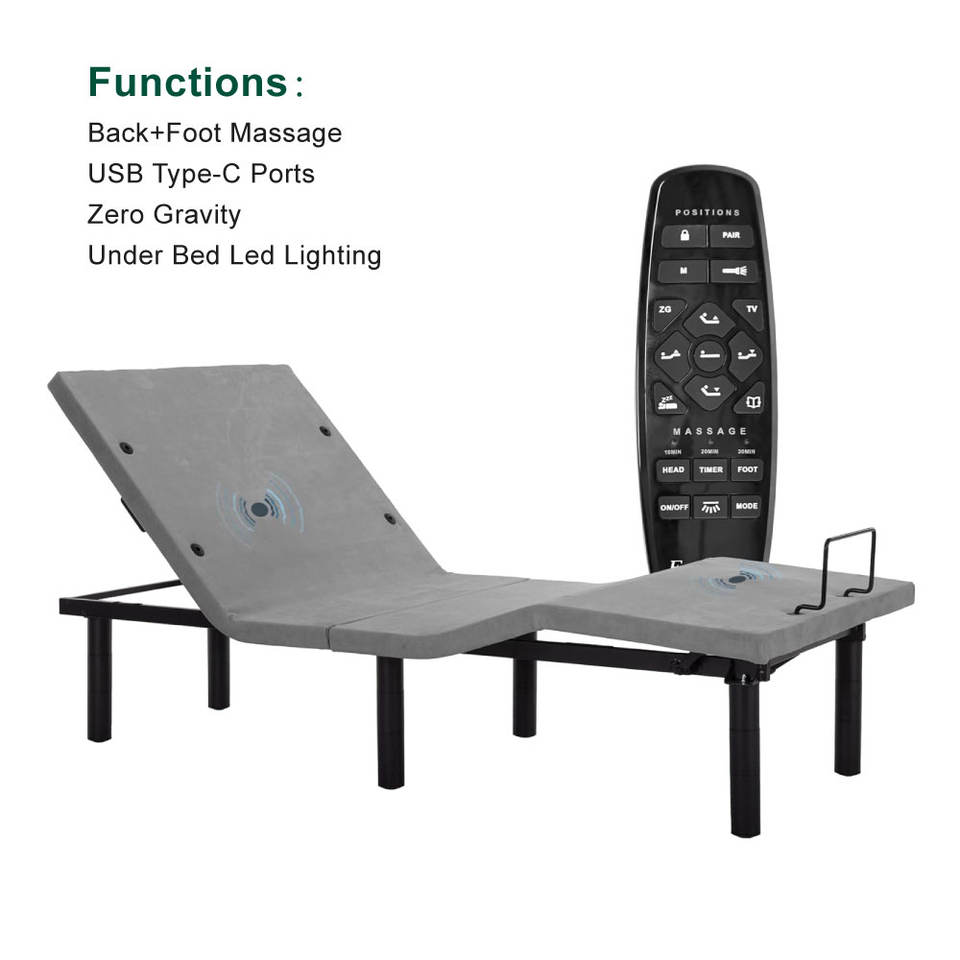 Base Letto Elettrica Motorizzata a Gravità Zero Regolabile con Inclinazione Testa e Piedi, Capacità 800 Libbre, per Assistenza Domiciliare