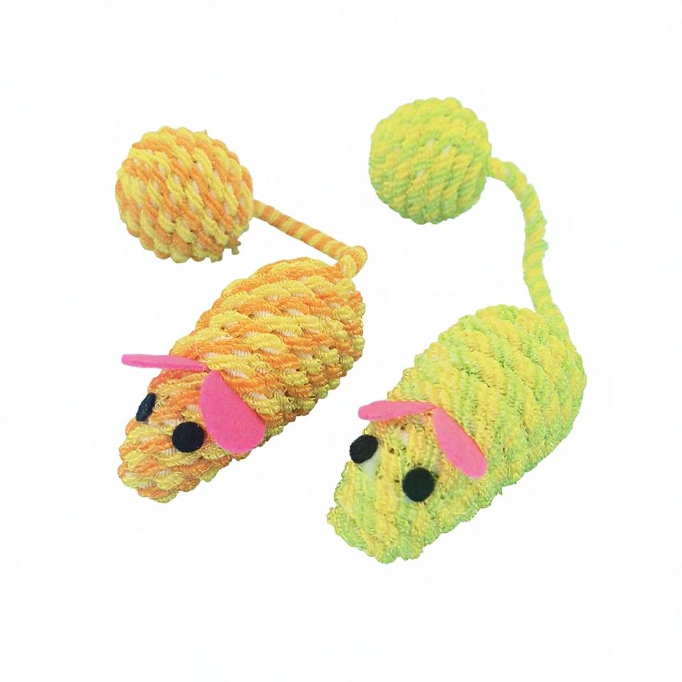 Giocattolo per cani con coda di topo intrecciata colorata e palla, cigolante, in corda resistente