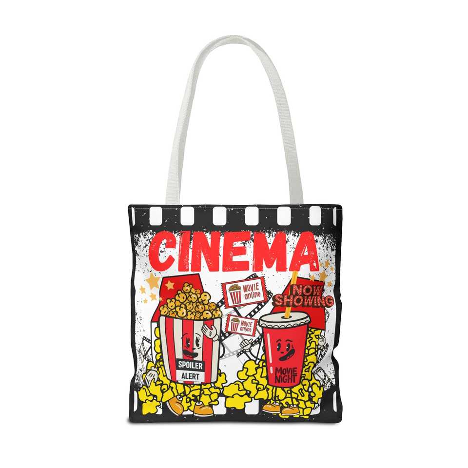 Borsa Tote Essenziale per Serata Cinema con Chiusura Aperta e Design Popcorn e Film per Uso Cinematografico
