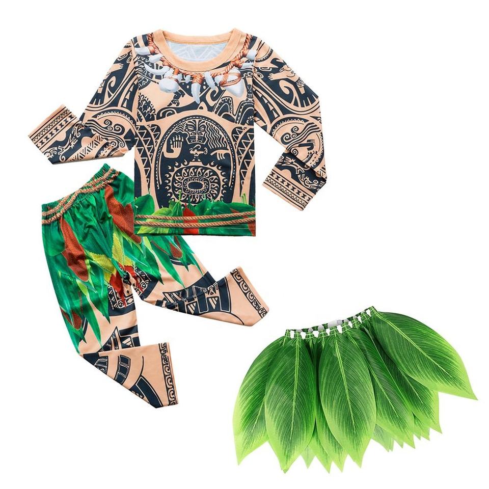 Movie Role Play Ocean Romance Adventure Vaiana Costumes Maui Tattoo Shirt Pant Pajama Set Fancy Costume Clothing With Hula Skirt