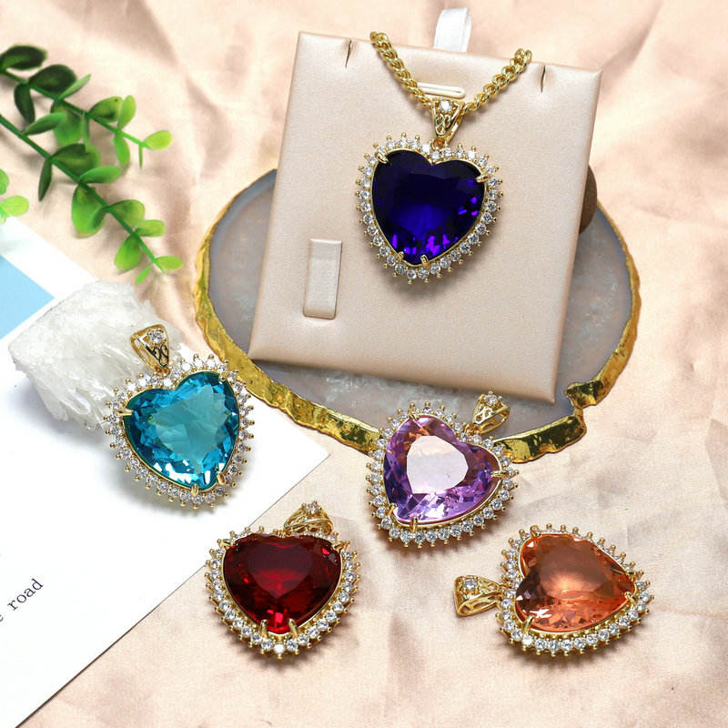 Movie Titanic Heart of the Ocean Pendant Necklace Blue Red Crystals Pendant Diamond Necklace for Clavicle Necklace for Girls