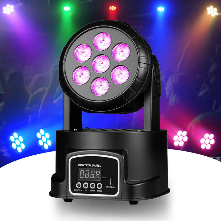Luci a Testa Mobile LED per Palcoscenico, Luci per DJ Professionali 7X8W 5000LM RGBW, Faretto a 12 Colori con Controllo DMX512 per Discoteca