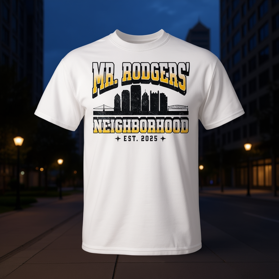 T-shirt Mr Rodgers Neighborhood Est 2025 con design City Skyline