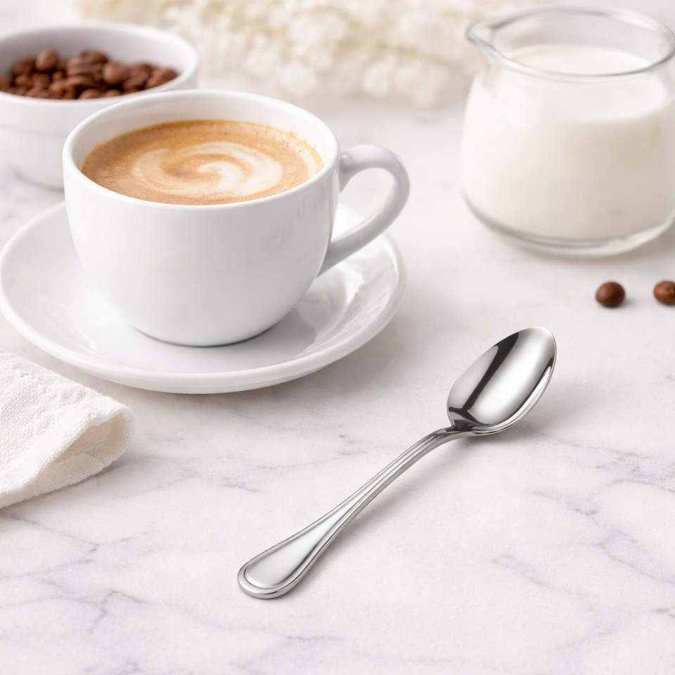 Mr.Spoon Serie Raya,Cuchara de Cafe 125 mm, Acero Inox 18/0, Plateado, Apto para Lavavajillas,Idea para Hosteleria Restaurante