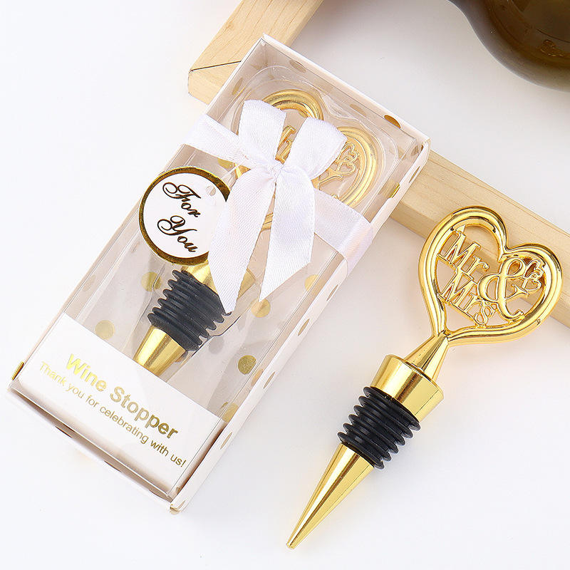 Mr and Mrs Wedding Gift Favors of Love Heart Wine Bottle Stoppers for Bridal Showers and Wine Party Favors for Guests